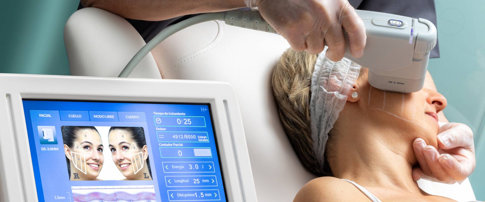 The device simultaneously combines radio frequency and ultrasound to tighten skin and address face areas concerns. BTL EXILIS treatment is ideal for patients looking for cosmetic improvement on their face without surgery and downtime.